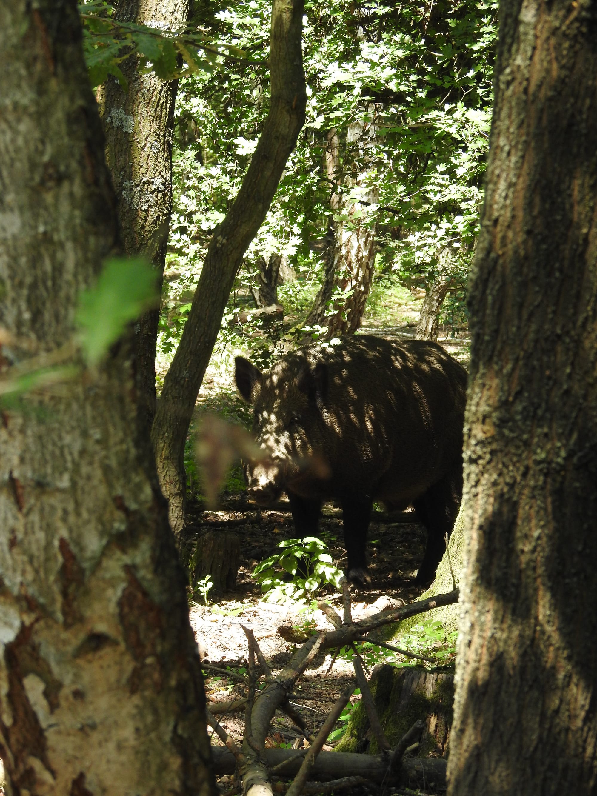 Ich jage seit vielen Jahren mit Pfeil und Bogen in Ungarn auf Schwarzwild und dazu sitze ich notgedrungen immer an denselben, mir zugewiesenen Kirrungen. Auch bei extremer Futternot kommt Schwarzwild dort nur in der Nacht und sehr vorsichtig. An einem schönen Tag zu Mittag im August hatte ich mich mitten im Wald an einer kleinen Lichtung mit einem tragbaren Ghost Blind (verspiegelter Bodenansitzschirm der den Untergrund vor ihm spiegelt) platziert, fernab der Kirrungen, um einen Bock heranzublatten. Mir gingen fast die Augen über als eine Rotte Schwarzwild im lockeren Pulk, entspannt im grellen Sonnenschein auf mich zuzog. Ich war außerhalb ihres Gefahrenzonenplans!